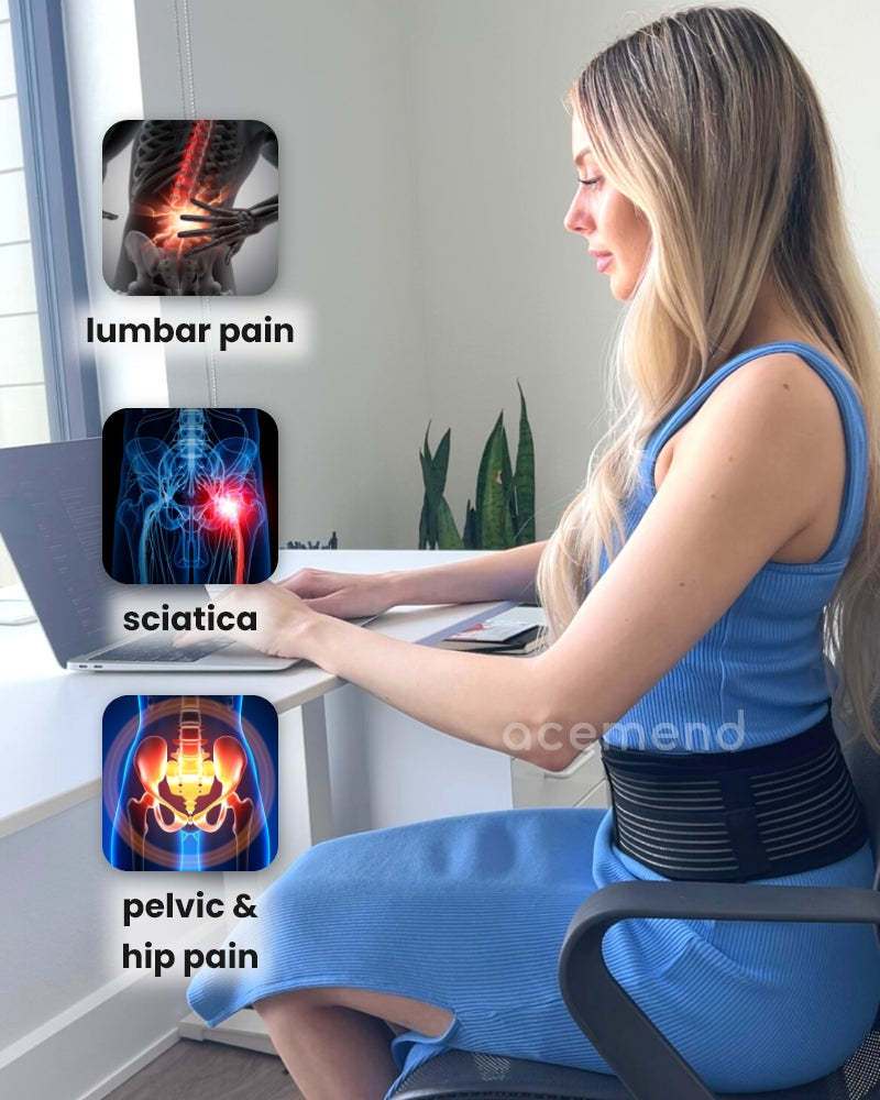 Providing restorative, multi-band targeted compression, the refresh belt supports & decompresses your vertebrae, which reduces the built-up tension in your spine & SI joint, and alleviates the pain in your lower back, pelvic area, hips, & legs.