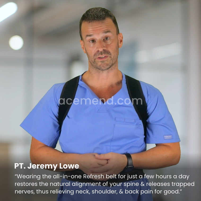 Refresh supports & straightens your neck & shoulders using the upper straps, and corrects the alignment of your entire spine using targeted compression from the lower set of adjustable straps.